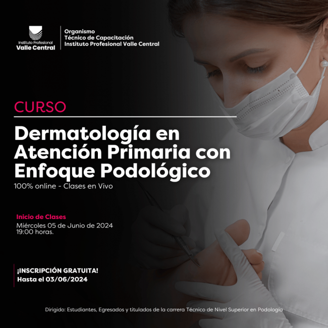 “Capacitación especializada en línea disponible para Técnicos y estudiantes de Podología“ Nos complace anunciar el inicio del nuevo curso de nuestra OTEC Valle Central, “Dermatología en Atención Primaria con Enfoque Podológico”. Este programa educativo está especialmente diseñado para Estudiantes y Técnicos de Nivel Superior en Podología, buscando profundizar sus competencias en el diagnóstico y…