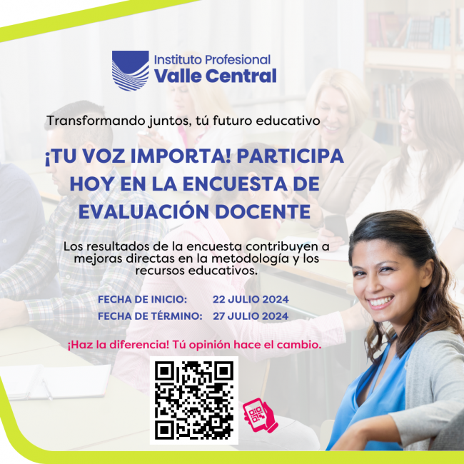Participa de la próxima Encuesta de Evaluación Docente en IP Valle Central