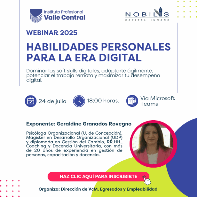 IP Valle Central Invita a Webinar sobre Habilidades Personales Clave para la Era Digital