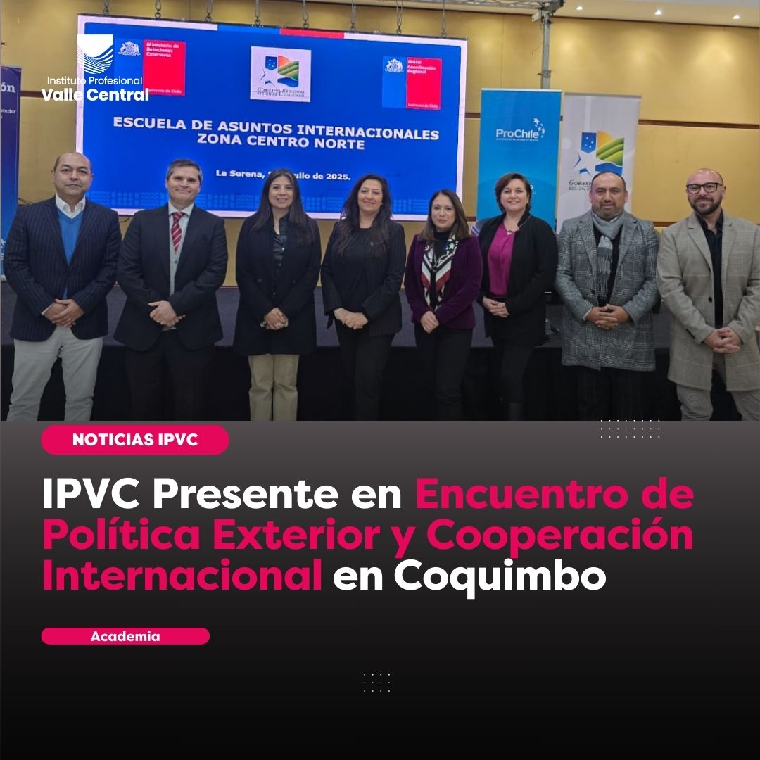 Con una mirada puesta en los desafíos globales y el papel estratégico de las regiones, el Instituto Profesional Valle Central, representado por su director de sede, Luis Ahumada Vera, participó en la reciente Escuela de Asuntos Internacionales – Zona Centro Norte, desarrollada en La Serena.