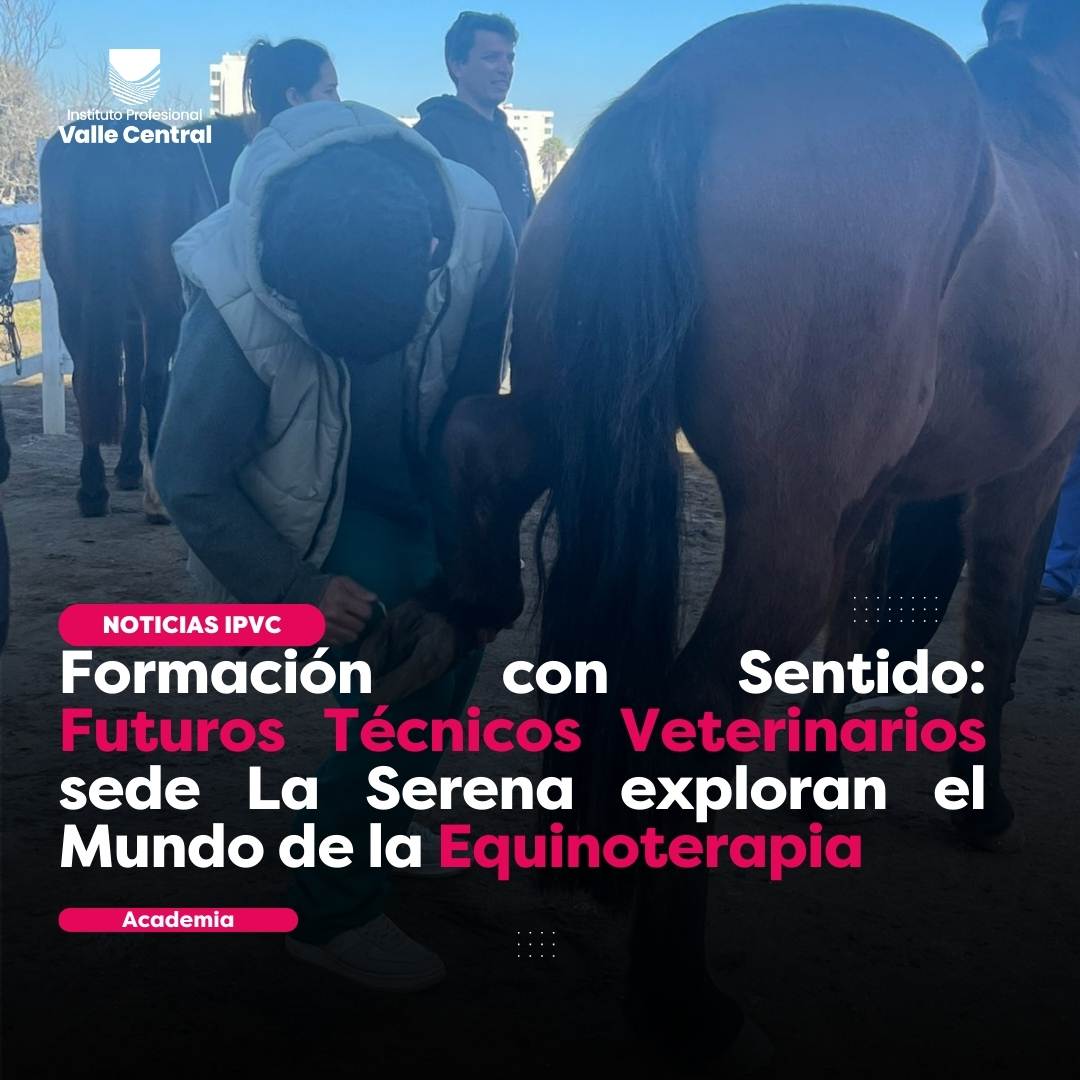 Con el propósito de fortalecer su formación práctica y acercarse al ámbito profesional, estudiantes del Técnico de Nivel Superior en Veterinaria realizaron una visita pedagógica a la Escuela de Equinoterapia de La Serena, en el marco de la asignatura Producción Animal.